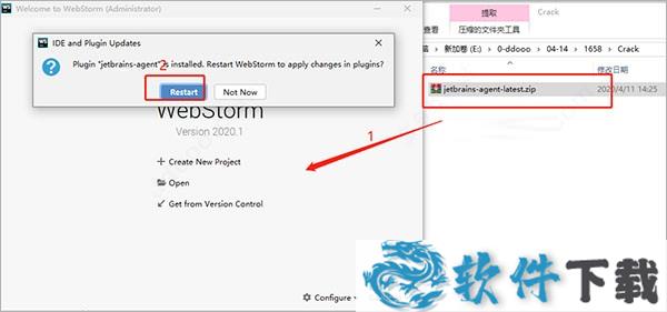 8.再将本站提供的“jetbrains-agent-latest.zip”文件拖放到 IDE 窗口,并点击restart