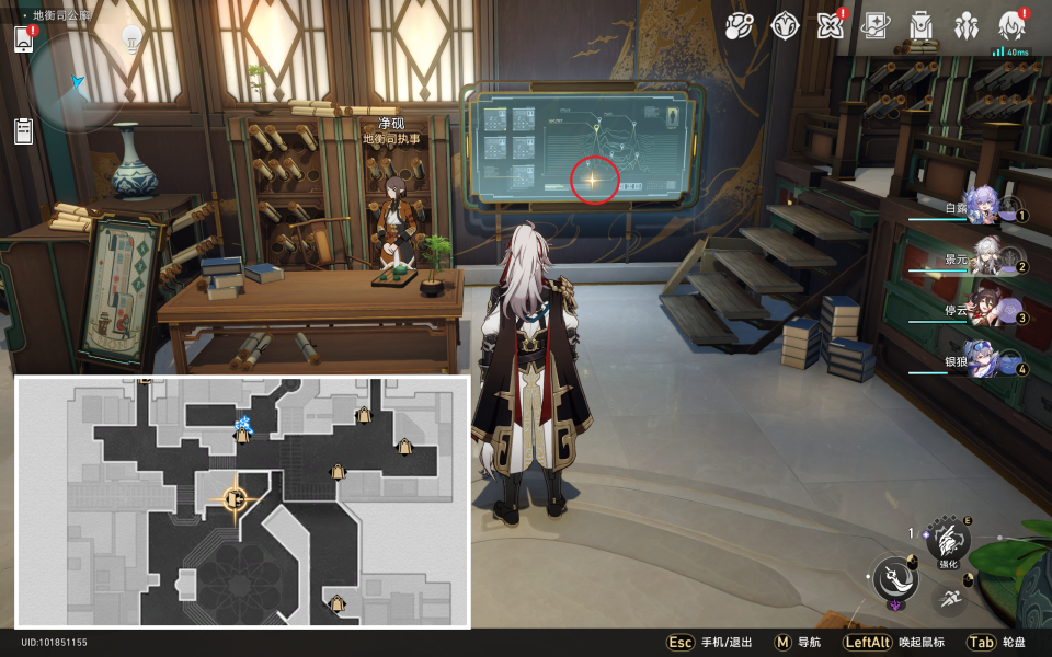 (2)之后来到长乐天的地衡司,调查净砚旁边的屏幕即可获得成就