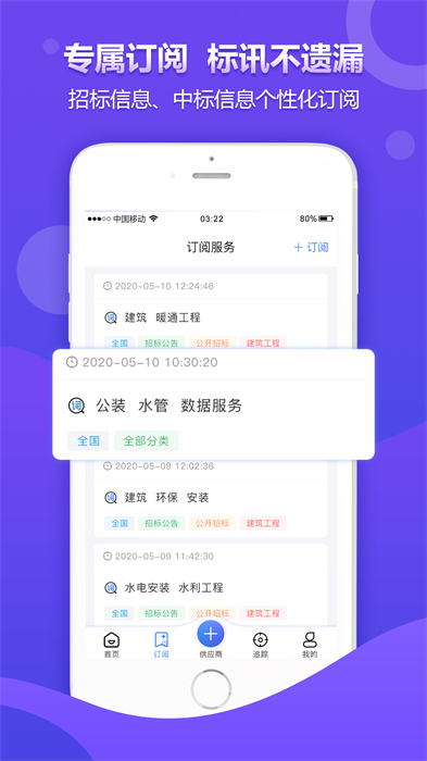 随时灵活更改订阅关键词,享受查看企业综合资质的便利,选择合作伙伴时进行综合评估和决策,提高商业联盟的成功率,获得符合自己需求的招标信息,灵活定制订阅关键词,全面查看公司资质,抓住商机。