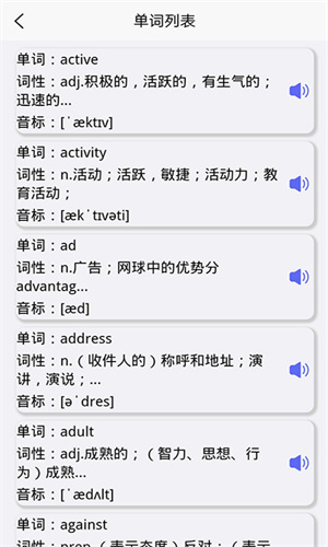 - 里面的所有英语单词都有非常专业的发音来帮助大家,还能帮助大家锻炼自己的口语。