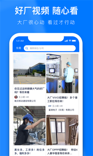- 每个朋友都可以在本软件中找到自己的工作,在手机上可以更具体地了解工厂的工作环境;