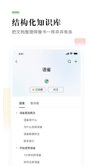 语雀官方版app是一款为各位上班族们提供的优秀文档知识库app,帮助你完成从收集、记录到整理输出的知识管理流程,特别适合逻辑要求高的结构化知识内容沉淀,给你最高效的工作环境,为每一个想表达自己想法的人提供一个便捷的工具。