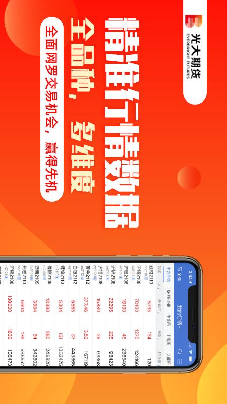 光大期货APP为您提供各类行情资讯、手机开户、掌上交易、业务指南、客户服务等移动互联端的综合服务,让您随时随地、方便快捷感受我们专业高效的服务。光大期货手机版软件是由光大期货官网推出的手机客户端,这款软件也是一款期货开户交易的手机平台,在光大期货app上用户可以使用app快速开户,还能查看各种期货的交易行情数据等等,非常全面,需要的快来下载吧!