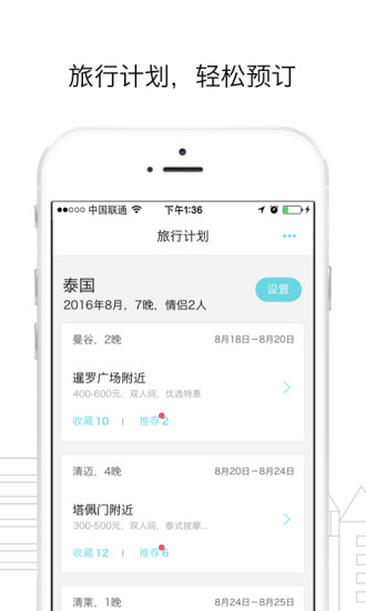 4、旅行计划:全新功能支持制定专属个性行程,订房更加直接方便。