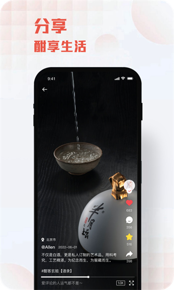平时会有饮酒的习惯吗?那么你知道在哪里可以找到更多和自己一样的爱酒人士吗?那么就来这款酣享来看看吧。酣享是一款专门为爱酒朋友提供的社交软件,在里面有许多的爱酒用户在里面分享自己的饮酒心得,以酒为主题的交流社区,形成不同的酒文化,在社区里面发表帖子,可以吸引朋友进行评论和分享点赞。