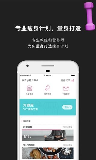 1、【运动方案】运动视频、减肥餐单,多种运动饮食方案,自由安排适合自己的减肥日程。