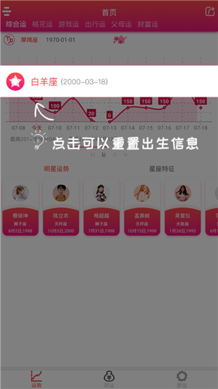 话说运势这种东西本来就比较玄乎啦,一般来说能得到好的运势且不说别的,自己的心中也会有许些安定,毕竟有个好的运势就能有好心情,有了好心情才能好好办事,这样才能有好的结果啦。除了自己的运势查看以外,你还可以进行别人的运势查询。详细的星座特征信息将会让你对星座有个全面的了解,更有明星星座你可以直接看到哦,快来找找爱豆的星座是否与自己的匹配吧。