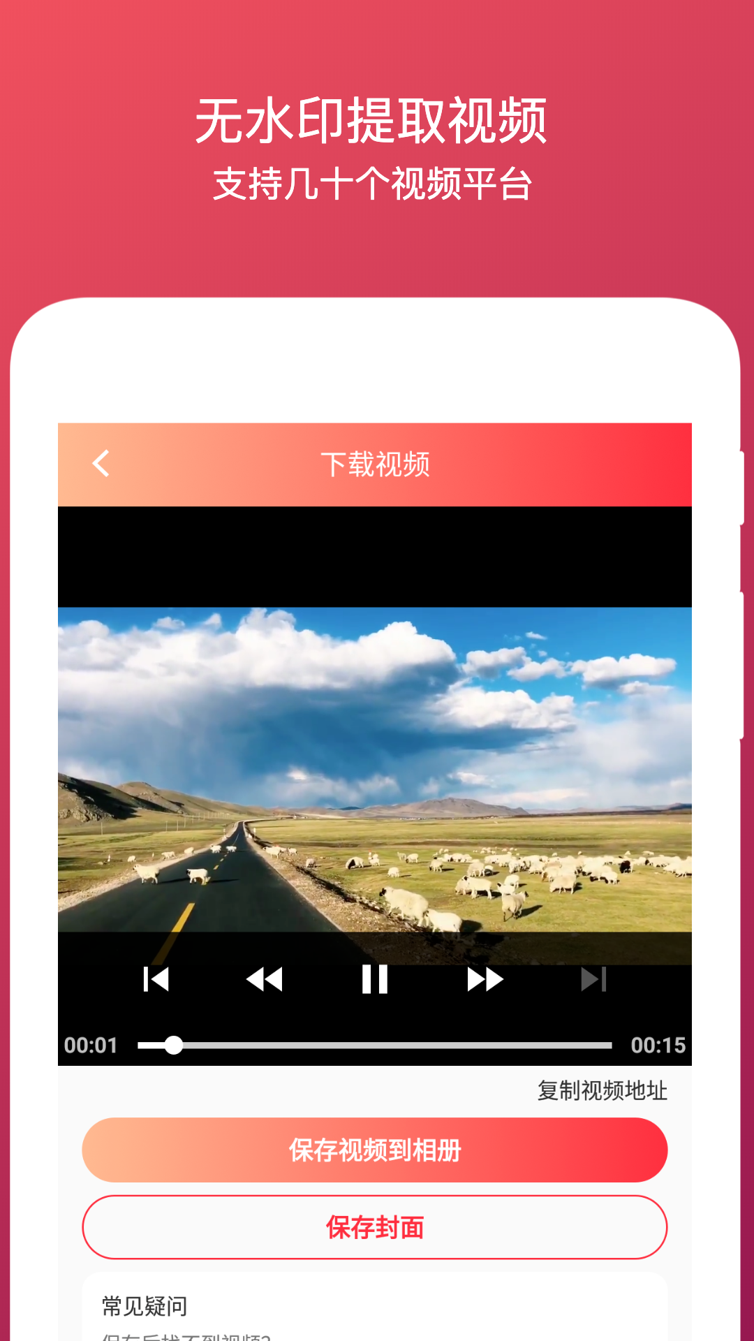 1:解析视频,解析的视频与原视频完全一致,而且支持从多个短视频平台提取无痕水印视频。