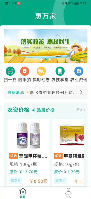 你在种植着属于自己的农田吗?想要通过线上买到靠谱的农用药品和化肥吗?那么就来看看这款惠万家,帮你更好地购买合适的农用产品。惠万家是一款非常便利的购买商品的软件,主要面向广大农民群众,给上游厂家和经销商带来更多利润,并提供了简单的解决方法,可以追溯农资的生产、购买、使用等一系列过程,全面限制整个农用药品和化肥产品。