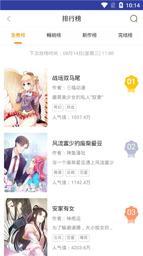 该软件包含了非常丰富的资源,有一些二次元漫画可以免费阅读,在这里可以搜索到每天都有很多漫画更新,该软件中漫画的类型也非常多。