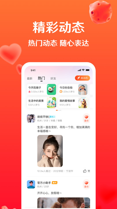 4、提供热门的话题、生活、娱乐等内容推荐,让用户在享受社交的同时也能获取热门娱乐资讯。