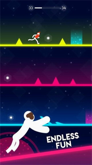 2、非常容易上瘾的游戏:点击屏幕跳跃,按住屏幕下行并飞行以避免障碍。