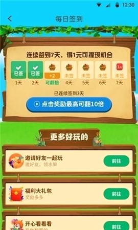 财运果树app是一款相当轻松的合成赚钱软件。这里的果树种类非常的丰富,每天都可以收获很多的果子,在这里参与趣味合成,解锁更多果树,轻松提高收益。相比其他的应用,这里所涉及到的一些活动方面要更多,每天上线完成签到之后,就可以领到随机红包。