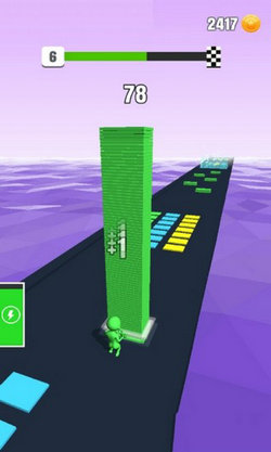 2、玩家在游戏中完成一定的关卡挑战的时候就可以开启下一关的关卡,玩家所开启的每一个关卡所需要的木板的数量和自己所能堆积的木板的颜色都不一样,玩家在游戏中需要根据不同的颜色和关卡要求来堆积更多的木板