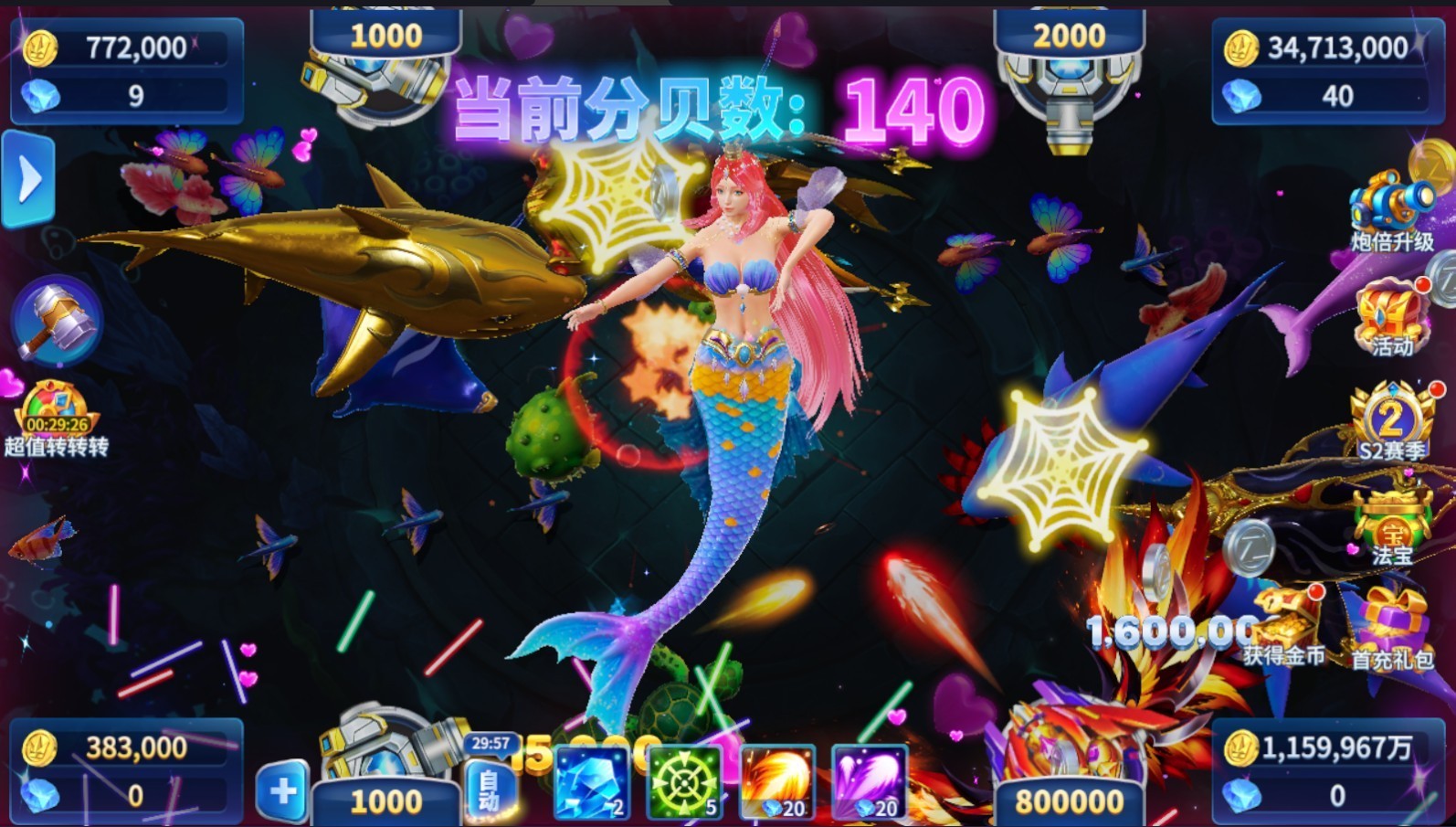 2. 炮台等级越高,奖励越多:玩家可以通过升级炮台来获得更多的奖励。千炮不算什么,万炮才过瘾。玩家可以打造专属的10000倍炮,享受高倍奖励的乐趣。