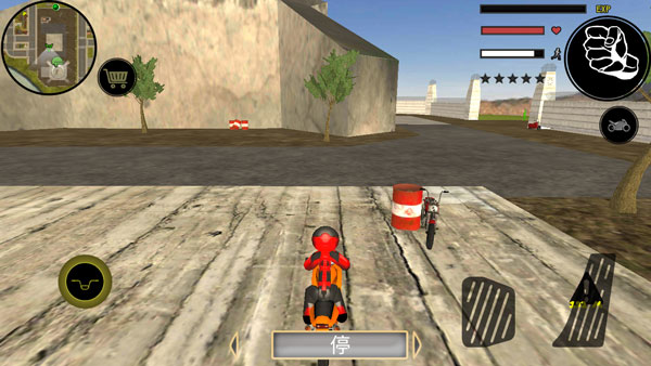 摩托和小车的操作方式都是一样的,方向键控制方向,短踏板是刹车和倒车,长踏板是油门。