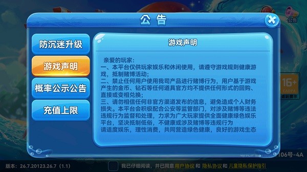 5、公平公正游戏平台,实力打造,专业防作弊机制,严厉打击一切作弊破坏游戏公正的行为,一经发现,永久封号!