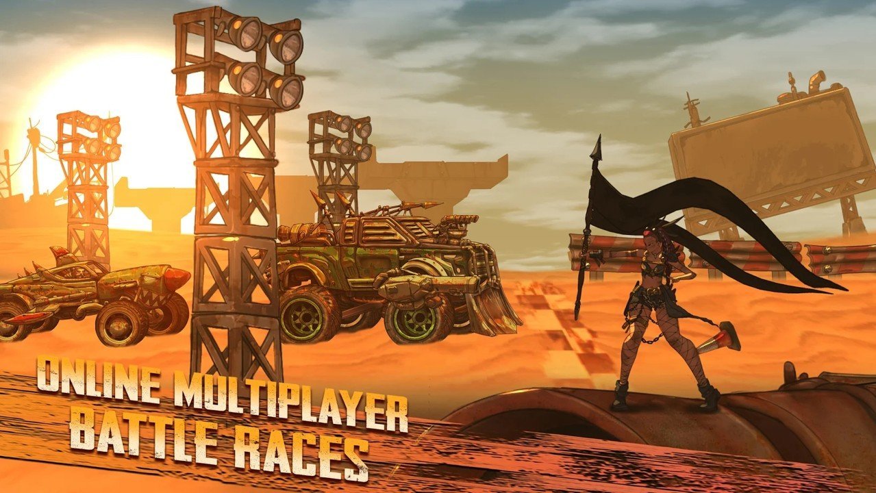 - 不断升级改造你的赛车战车,你还可以在赛车上安装各种武器和枪械进行射击作战,强大火力。