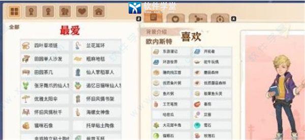 9、欧文斯特最爱的有四叶草项链、兰花耳环、田园单人沙发、茶几等,喜欢的有钻石、黄金、玫瑰石等。
