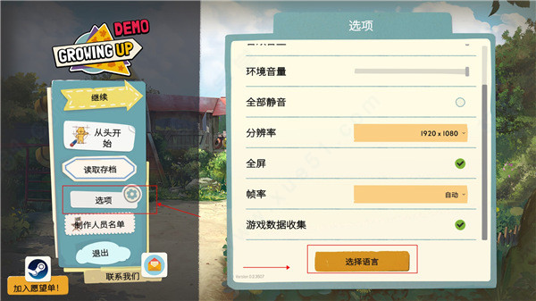 3、进入游戏后,点击选项,然后找到选择语言点击即可设置语言。