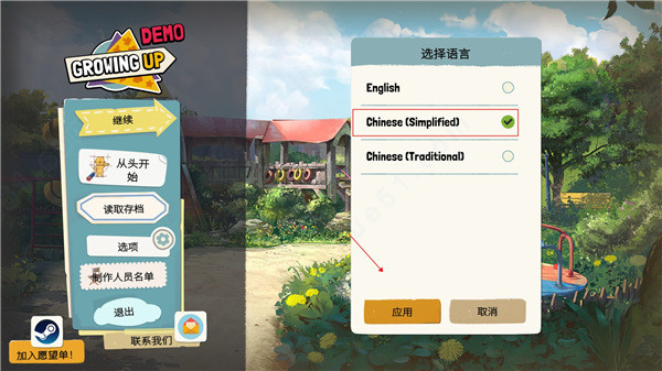 4、目前游戏支持简体中文、繁体中文、英文三种语言,选择简体中文即可。