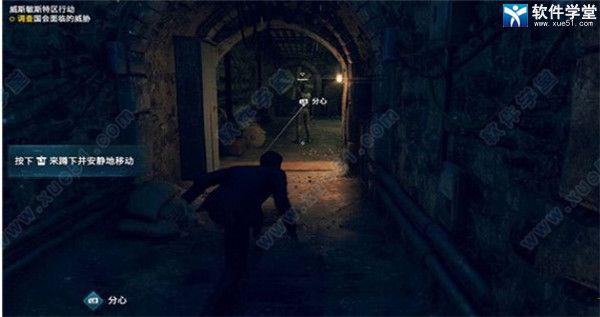 首先,使用分心技能,吸引前方敌人的注意力,然后背后将他打晕。