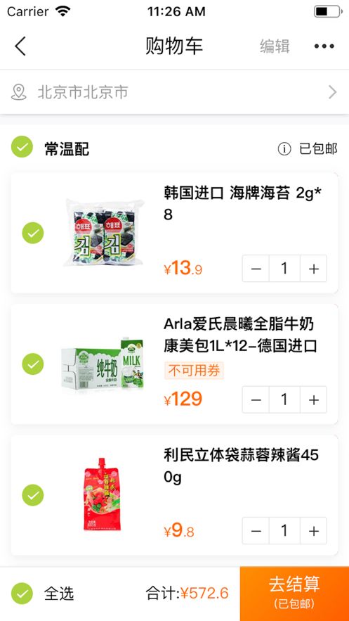 1.覆盖全国各大城市,精准定位用户当前所在区域,足不出户就能买到心仪的商品。