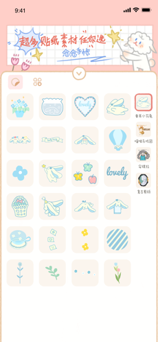 3、还能自己去选择贴画和贴画的位置,自定义去设计你的手账,让它变成你专属的以及最心仪的记录工具。