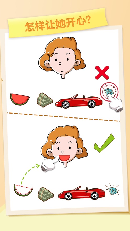 你的脑洞够大吗?那就来试试这款逆向思维吧,每一个关卡的结果都出乎意料,看看你有没有本事顺利通关吧。逆向思维是一款内容很刺激很具亮点的冒险闯关游戏!这款手游玩法操作很简单,主要就是考验各位伙伴的思维能力,你需要努力展现自己优秀的聪明头脑,同时还得要进行一系列的刺激闯关大战,游戏玩法简单 ,适合很多年龄段的玩家!