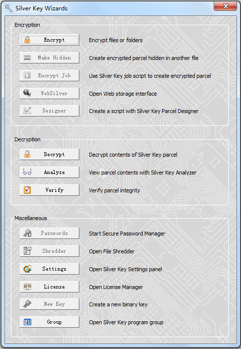 Silver Key是一个用于加密文件或者文件夹,生成可以在因特网上发送的自解密加密包的软件。Silver Key不需要你的通讯软件安装有任何加密软件,接收者解密数据唯一需要的就是正确的密码和密匙。当你使用SilverKey加密一个文件的时候,该软件首选压缩并且加密该文件,并且捆绑一个小型的解密程序到该加密的文件,当你的通讯软件接收到该数据包,他必须执行它以便解密该数据,可兼容于HIPAA。
