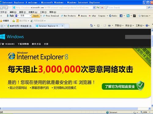 Internet Explorer 8 是您熟悉的这款最常用的 Web 浏览器的最新版本,与以前的版本相比,它可帮助您更方便快捷地从 Web 获取所需的任何内容,同时提供了更高的隐私和安全保护。