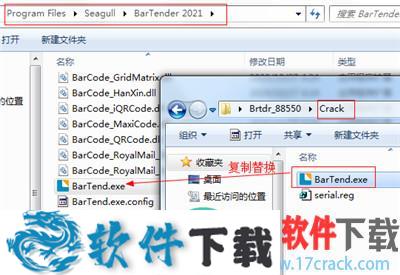 6、接着将Crack夹中的“BarTend.exe”破解文件复制到软件安装目录中替换