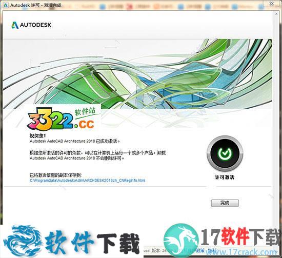 4、点击“xf-adsk2018_x64.exe”或“xf-adsk2018_x32.exe”打开Architecture 2018注册机,点击“Patch”,若成功则会提示“Successfully patched”