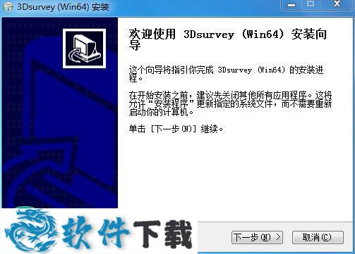 1.下载并解压,运行3Dsurvey-2.10.0-win64.exe程序,来到安装界面,点击next继续。