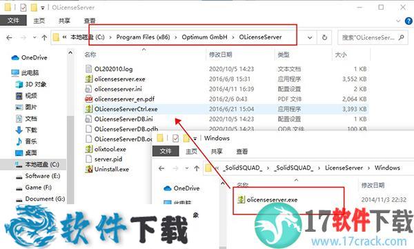 4、将_SolidSQUAD_破解文件解压,复制olicenseserver.exe到OLicenseServer的安装目录下替换原文件;