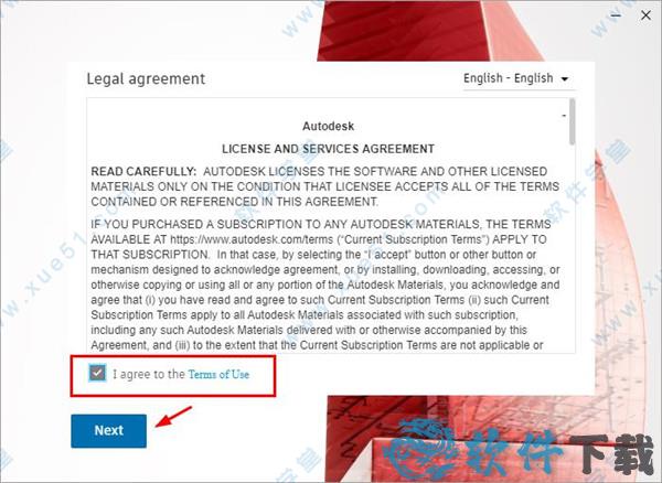 3、阅读同意Autodesk协议条款,然后下一步即可;
