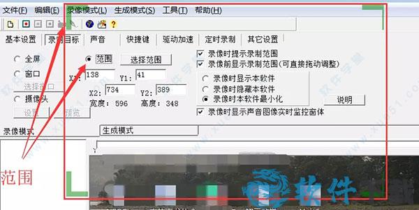 8、录制目标自由选取:可以是全屏、选定窗口或者选定范围。