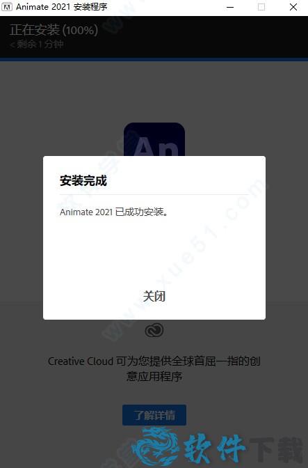 3、Adobe Animate2021正在安装当中,请耐心等候。
