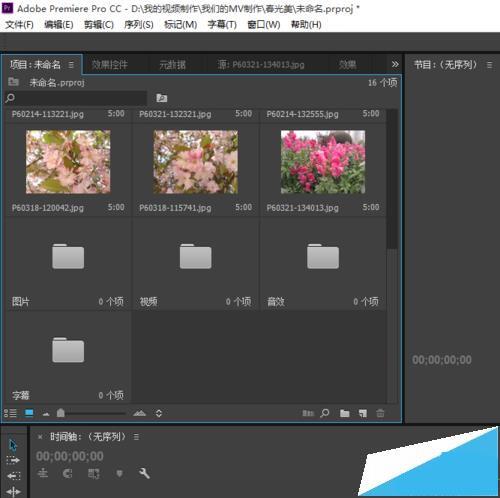 2、导入素材,根据你的电脑情况,一次性不宜太多,否则电脑容易崩溃。新建素材想,对导入的素材进行分类。
