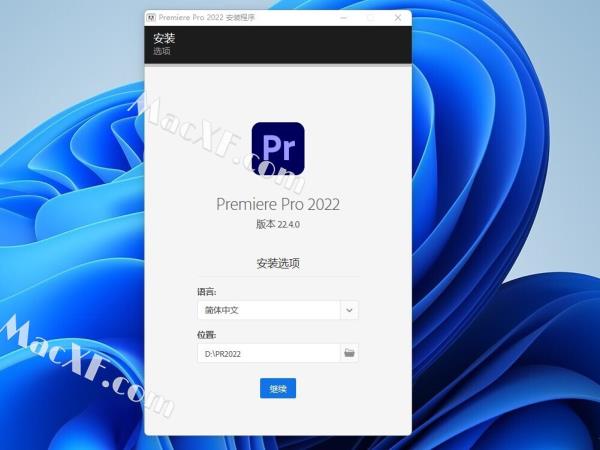 2进入安装界面,安装目录可自行选择或者默认,点击“继续”;