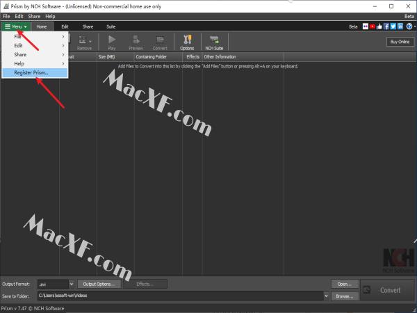 9打开软件,点击“Menu”,在下拉菜单中找到“Register Prism...