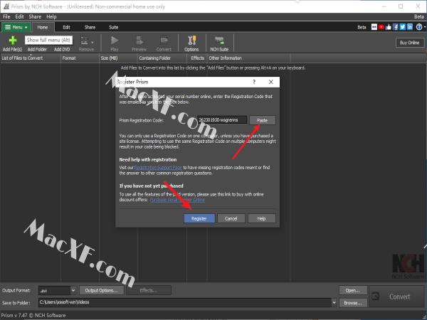 ”将刚刚复制的注册码粘贴过来,点击“Register