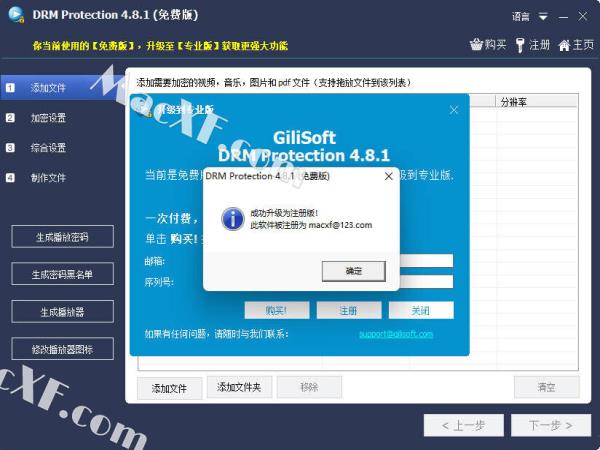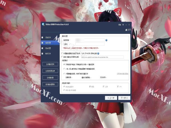 非PC绑定,固定播放密码适用于所有计算机。2)PC-Binding,一个播放密码只能在一台硬件绑定的电脑上使用。3)演示视频,创建一个没有播放密码的演示。4) U 盘绑定,视频只能在绑定的 U 盘上播放 5) CD 绑定,视频只能在绑定的 CD/DVD 上播放