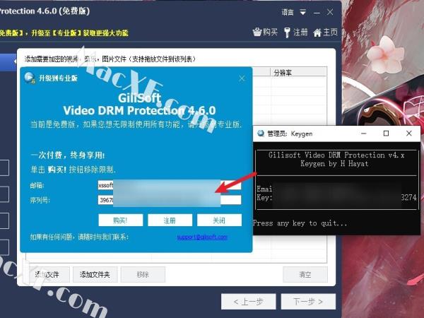 10打开软件,点击注册,输入任意邮箱,将注册码复制到注册信息内